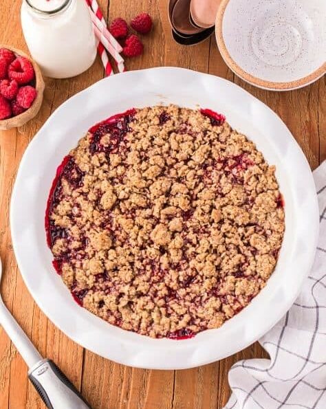 Spread the mixture over the apples and -optionally- add the raspberries and the rest of the ground coconut.